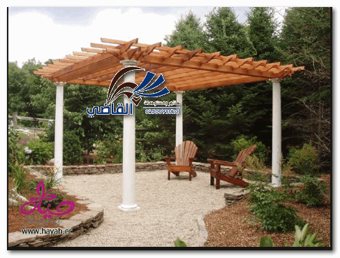 تعريشة الخشب توفر مظلة رائعة وعصرية للحديقة، تضفي جمالية فريدة وتحمي من الشمس الحارقة في فصل الصيف. إنها مصنوعة من الخشب الطبيعي المتين والذي يتميز بجودته وقوته. يمكن تجهيز تعريشة الخشب بمظلة قماشية بنفسجية اللون لتوفير الظل المطلوب والحماية من أشعة الشمس الضارة.